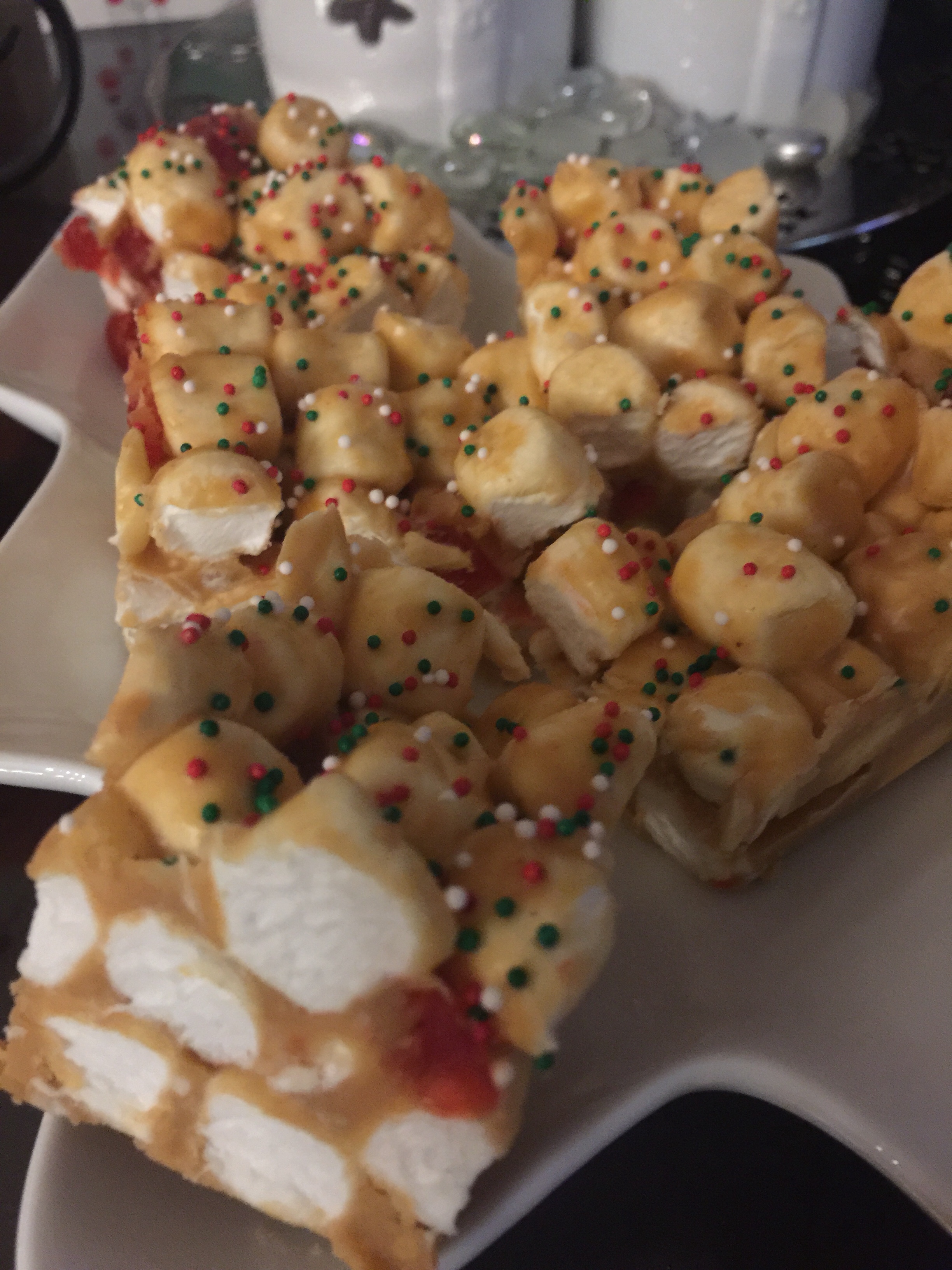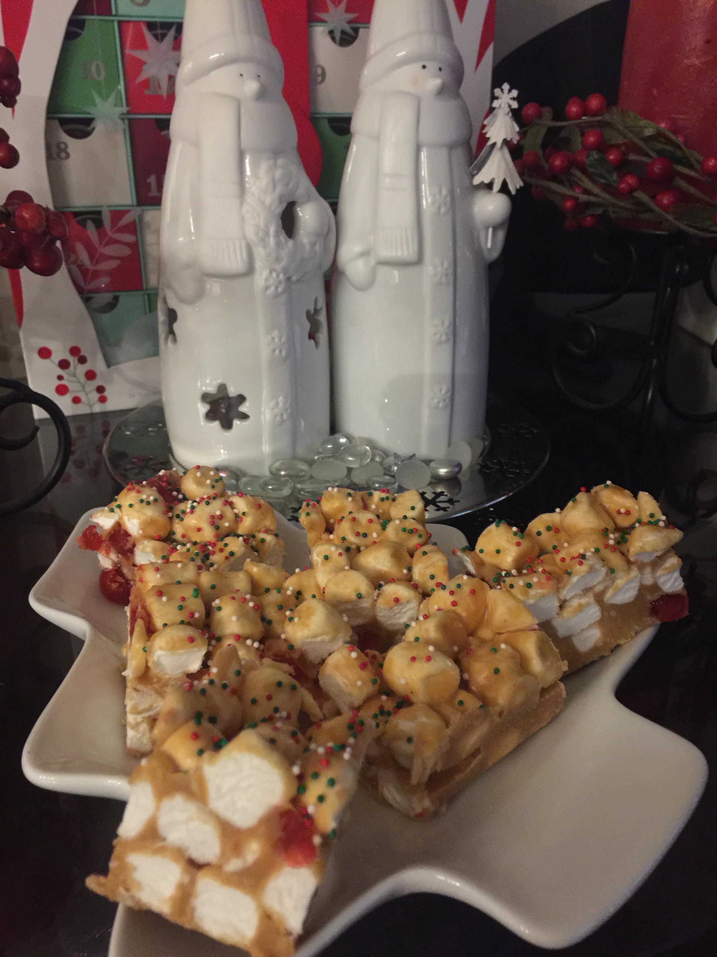 Everyone was either working or out at about so I decided to stay in, clean house and do some baking. I had all the ingredients for Peanut butter Marshmallow Squares so I decided to whip some up. Plus they are my son’s favourite. Hopefully some will make it to Christmas. 😉