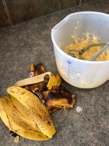 3 well mashed, well ripened bananas (usually ends up being about 2 cups)